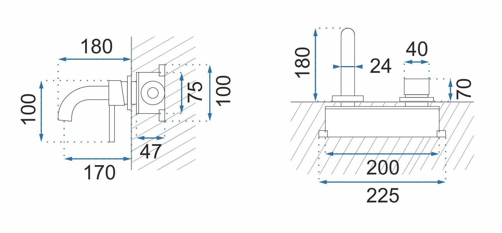 Robinet ascuns funcțional și modern. Este un produs care vă va umple perfect spațiul din baie, păstrând în același timp o estetică interioară excelentă. Bateria este potrivită pentru montarea pe perete. A fost realizat din alamă acoperit cu un strat triplu . Datorită unei faze speciale de producție, este durabil și ușor de curățat.