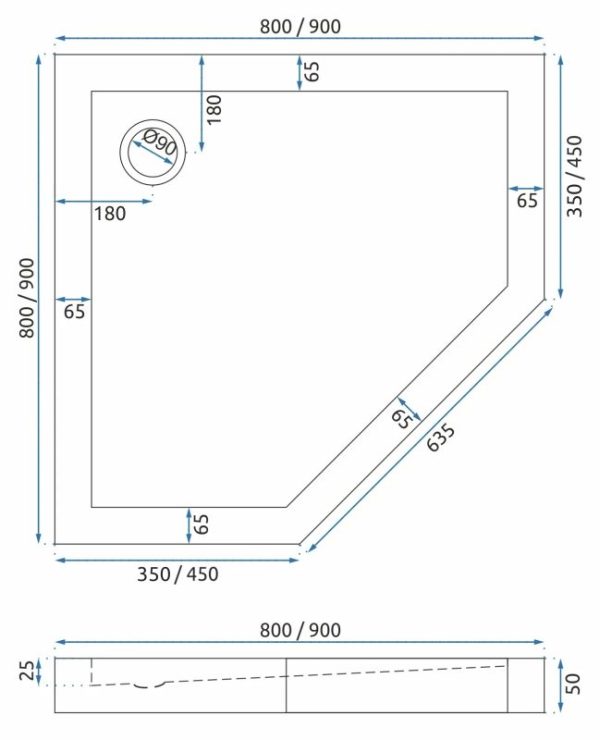 Cadita de dus Diamond 90×90 Alb