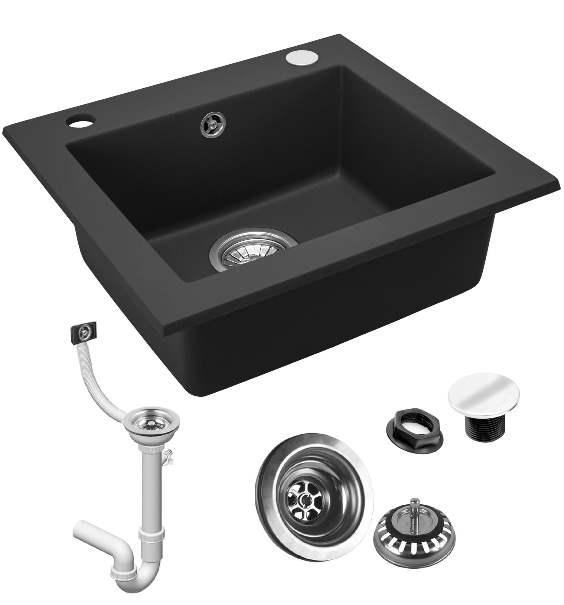 Chiuveta inclusa in set: garnitura, sifon cu sita, suporturi de fixare, zaślepka