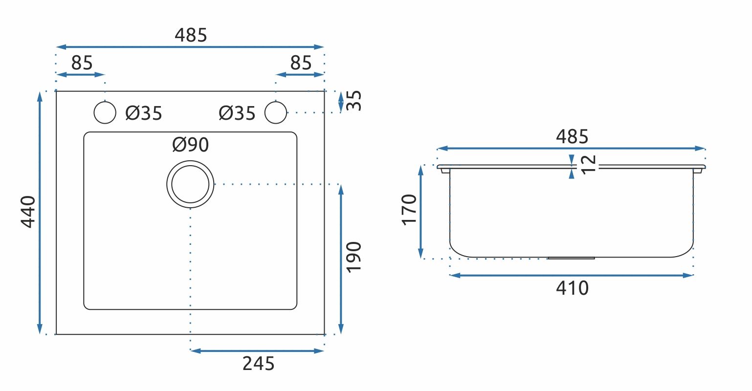 Lungimea chiuvetei: 485