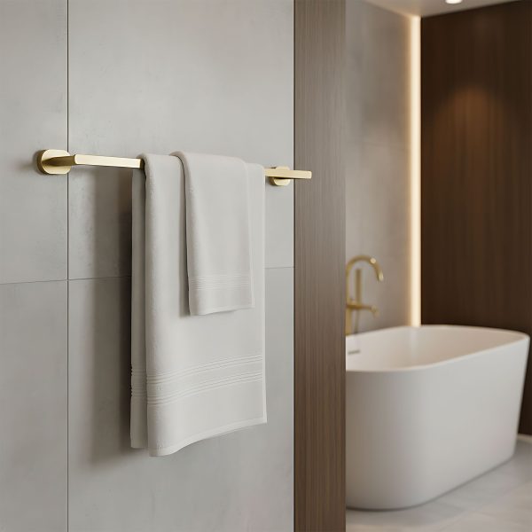 Apreciază eleganța și luxul în baia ta cu suportul pentru prosop Rea Til în finisaj exclusiv auriu periat. Este combinația perfectă între stilul glamour rafinat și funcționalitate, care va impresiona orice utilizator. Acest accesoriu de baie nu doar evidențiază designul elegant al încăperii, ci oferă și fiabilitate și durabilitate de lungă durată.Finisaj auriu periat – culoarea nobilă și textura delicată oferă rafinament și eleganță atemporală.Design modern – o formă minimalistă, dar expresivă, care se potrivește perfect tendințelor glamour și contemporane.Elemente de montaj ascunse – asigură o instalare curată, fără șuruburi vizibile, subliniind liniile fine ale produsului.Lungime optimă – oferă suficient spațiu pentru agățarea confortabilă a unui prosop mare de baie.Suportul pentru prosop Rea Til este alegerea ideală pentru cei care apreciază detaliile luxoase și confortul zilnic. Perfect în fiecare detaliu și fabricat cu grijă, va fi o adevărată piesă decorativă în baia ta. Datorită construcției solide și montajului ușor, poți fi sigur că acest accesoriu va oferi fiabilitate pentru mulți ani.