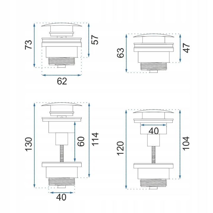 Dopul click-clack este universal, se potrivește atât lavoarelor cu si fără orificiu de preaplin. Datorită unei faze speciale de producție, pluta este protejată împotriva coroziunii, pătării și decolorării. Lavoarele potrivite pot fi găsite pe site-ul nostru.