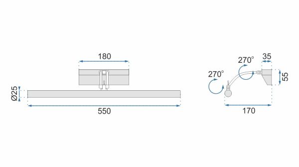 Ponadczasowy i elegancki kinkiet Led idealny jako oświetlenie łazienkowe nad lustrem jak również witryn sklepowych czy w salonach fryzjerskich. Doskonale będzie się prezentował jako oświetlenie obrazów. Lampa posiada regulowane ramię kinkietu z możliwością regulacji kąta nachylenia w dwóch punktach. Nowoczesny wygląd i wykonanie lampy z pewnością zrobi wrażenie na każdym.