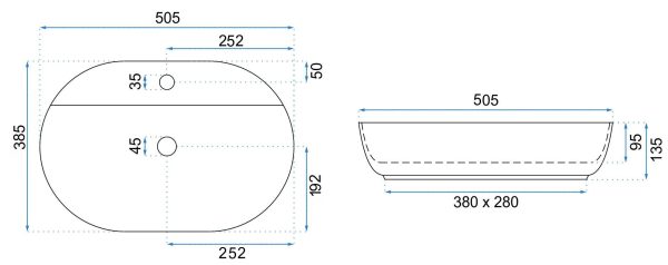 Lavoar pentru blat REA Aura 51 White Matt