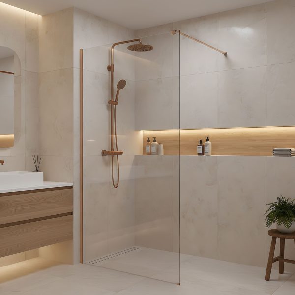 Visezi la o baie plină de căldură și lux? Descoperă peretele de duș walk-in Rea Flexi într-o configurație interesantă: sticlă transparentă și profil în culoarea cupru periat. Această combinație de formă modernă și finisaj elegant conferă interiorului un caracter unic. Realizată din sticlă securizată de 8 mm, construcția asigură durabilitate și stabilitate.Sticlă securizată de 8 mm – sticlă groasă și sigură, transparentă, care nu afectează vizual spațiul.Profil din aluminiu în cupru periat – finisaj luxos, periat, al profilului și al brațului de susținere, perfect asortat cu sticla clară.Strat Easy Clean – barieră hidrofobă invizibilă care facilitează scurgerea apei și protejează împotriva depunerilor de săpun și calcar.Bară de stabilizare de 120 cm cu posibilitate de ajustare – brațul superior în culoare cupru poate fi tăiat pentru a se adapta cerințelor individuale.Montaj universal – peretele poate fi instalat pe partea dreaptă sau stângă, pe cădiță sau direct pe pardoseală.Construcție Walk-In – acces deschis, modern, fără elemente mobile, pentru confort și fiabilitate.Peretele de duș Rea Flexi este alegerea ideală pentru cei care caută un stil rafinat. Datorită stratului Easy Clean și materialelor solide, produsul îmbină estetica de înaltă clasă cu funcționalitatea zilnică.