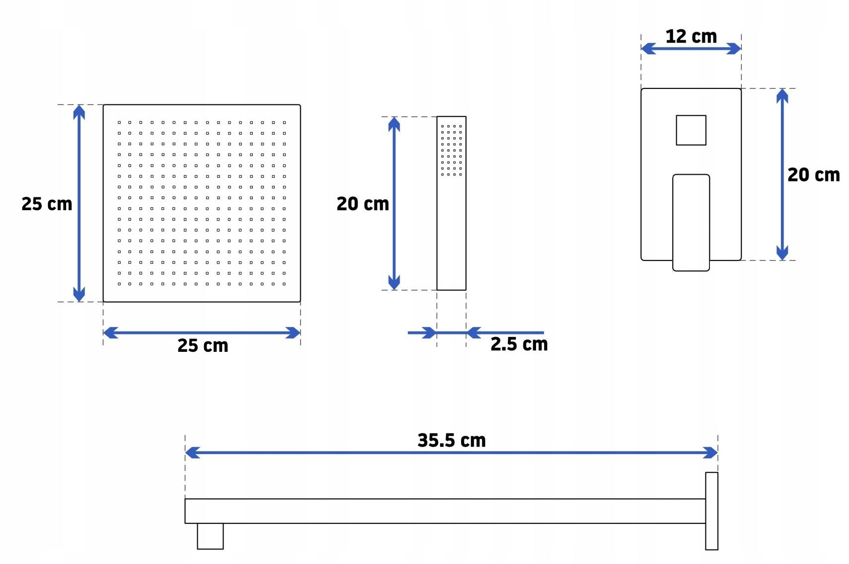 Inclus in set: baterie incastrata, cap de dus, umar pentru cap de dus, furtun 1500 mm, Para, suport pentru para, garnituri, box
