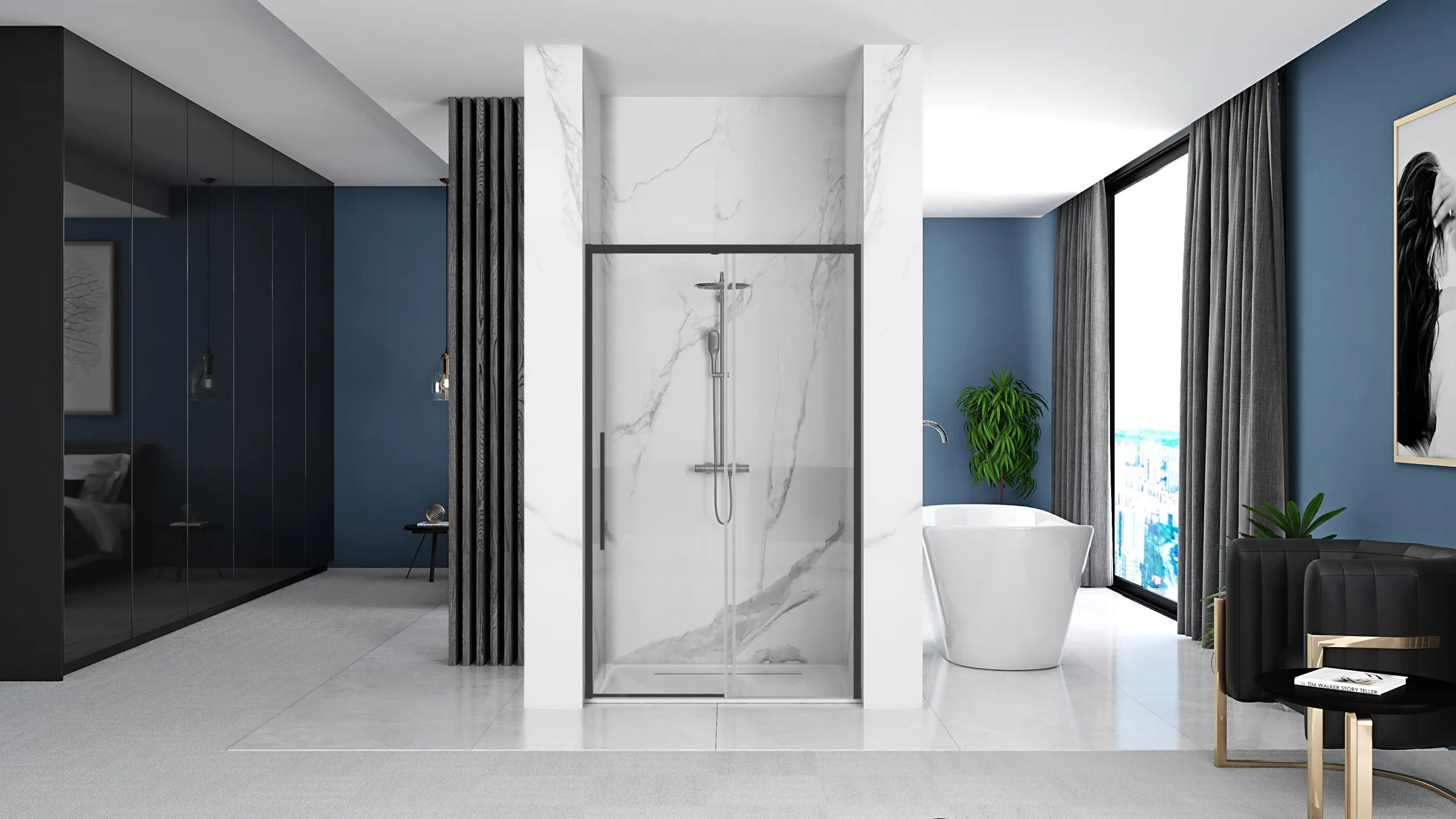 Solar Black Mat este o ușă de duș expresivă, dar atemporală și modernă, realizată din materiale de cea mai înaltă calitate și finisată cu laminat negru. Învelișul negru, mat este rezistent la murdărie și pete și este, de asemenea, ușor de curățat. Combinația de profile negre, un mâner lung și balamale cu o linie transparentă de suprafețe de sticlă se va potrivi perfect într-o baie modernă și tradițională. Culoarea neagră este un lider sigur pe piața de design interior al băilor.